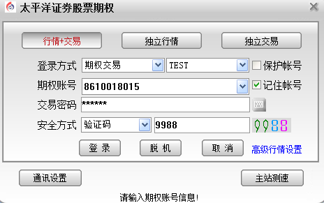 期权账户登录:启动软件,输入期权资金账号、密码、验证码,点击登录。