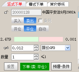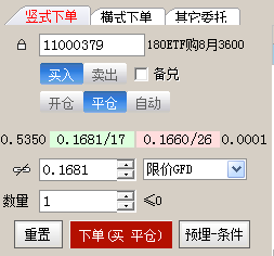 登入股票期权账户,选择买入、平仓,进行买入平仓操作: