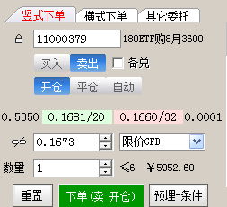 登入股票期权账户,选定合约,选择卖出、开仓,进行卖出开仓操作: